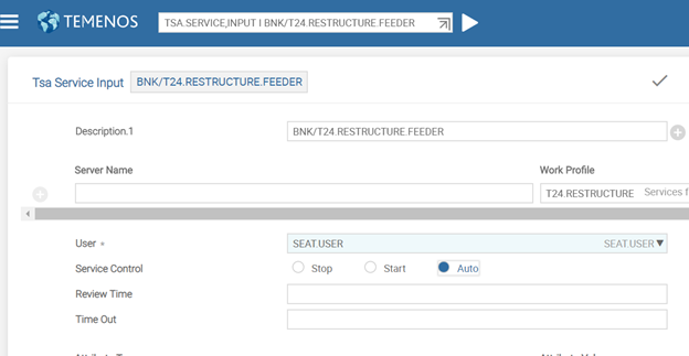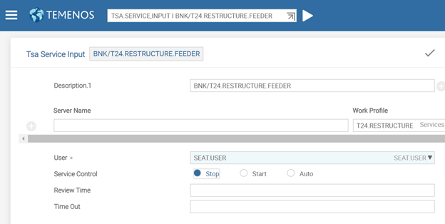 - In T24.RESTRUCTURE.FEEDER, you need to set Service Control to Auto. This starts the restructure process.