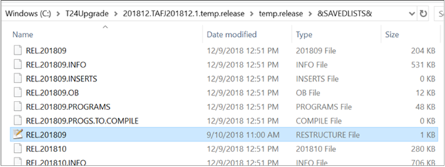 - In Temenos Transact release package, the REL.release (here REL.201809) file must be available for restructure definition list.