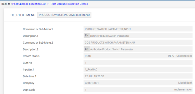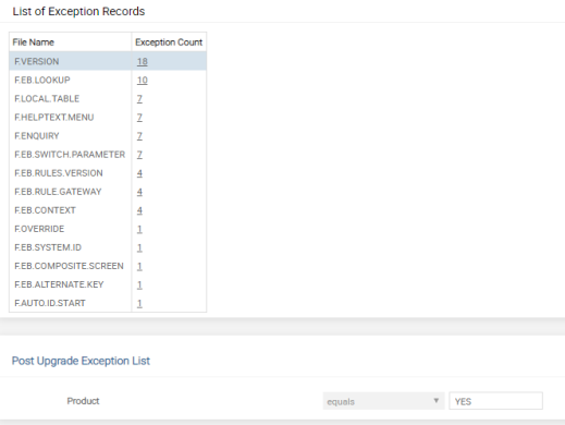 You can use the POST.UPGRADE.EXCEPTION.LIST enquiry to monitor the list of data items released in exception during generic upgrade, updates, product installation and data items released from an online upgrade. This section provides you the details of the corresponding enquiries and reports.