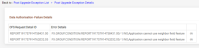 If the corresponding Temenos Transact.GENERIC.UPLOAD OFS.SOURCE record is setup to enable log (specific to the reporting purpose), the Temenos Transact.AUTHORISE service can update the authorisation failure details (if any) in OFS.REQUEST.DETAIL when authorising the exception records. If you configure a specific value in the Det Prefix field, the error details can be easily extracted using the View Error Details drill-down.