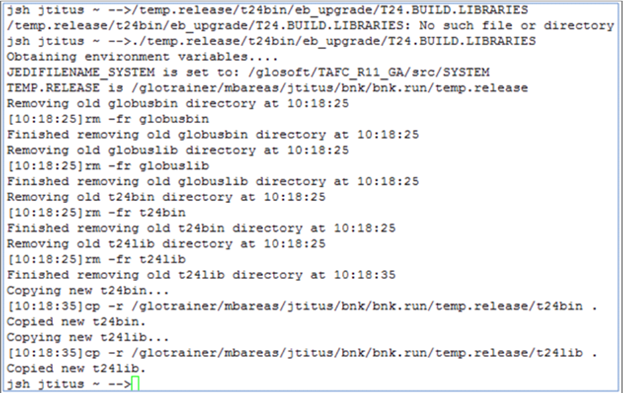 jsh --> temp.release path/t24bin/eb_upgrade/T24.BUILD.LIBRARIES