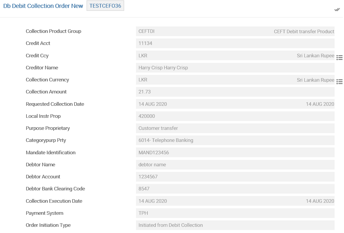 Debit Collection application allows the bank to create Collection Capture pages for collection and clearing types. Additionally, enables to create it for specific clearing according to the requirements of the bank.