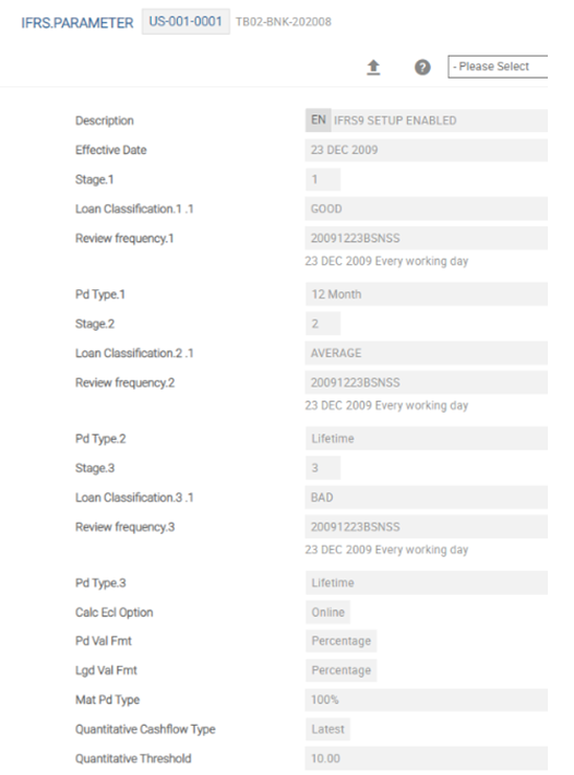 The PD/LGD values can be defined at various levels – through an API in the IFRS.PARAMETER, at contract level, at customer level and at product level. The system automatically picks up the appropriate PD/LGD values for the ECL calculations based on the order of priority.