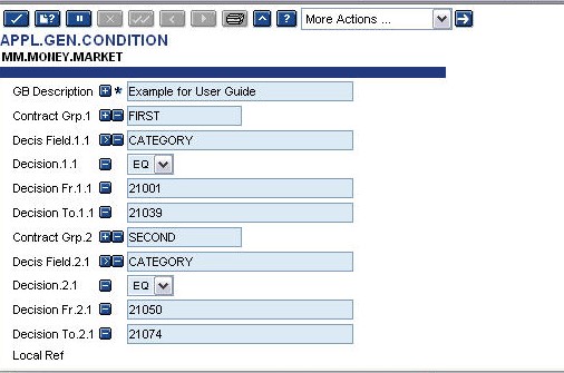 The MM.MONEY.MARKET and LD.LOANS.AND.DEPOSIT applications call the evaluation routine automatically. Other applications can call the evaluation routine from VERSION routines to update local reference fields with the relevant group code.