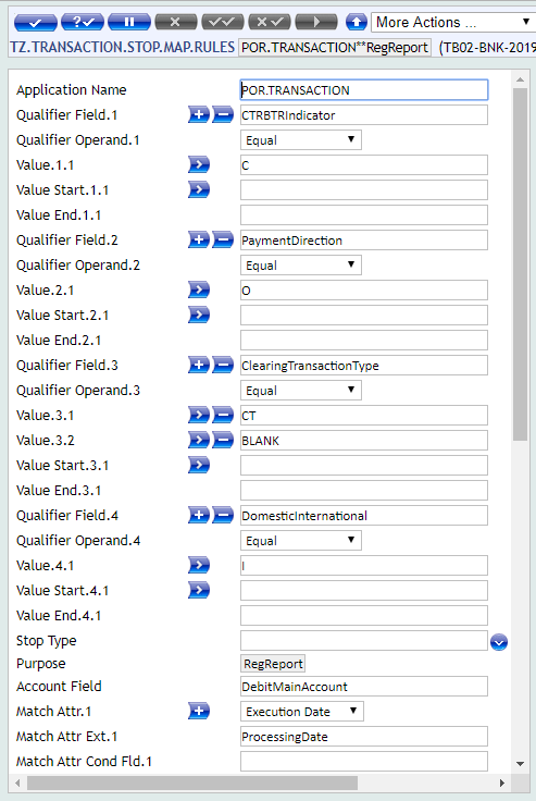 - TZ.TRANSACTION.STOP.MAP.RULES – It allows the bank to define the transaction sources for which the stop instructions are checked and how the value of the stop attributes can be extracted from the transaction.
