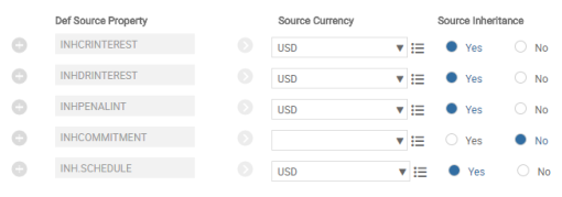 - In cases where the Inheritance Condition needs to be specified for currencies other than the source arrangement currency, it is possible to do so only for those Properties flagged as Inheritance Only.