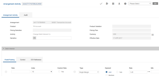 - Now, the usual Change-Debit Interest Activity can be run to amend the Conditions (Margin rate changed from 0.75 to 1.45).