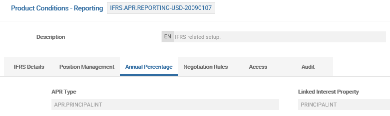 - The APR calculation is supported for Deposits, Lending and Account product lines.