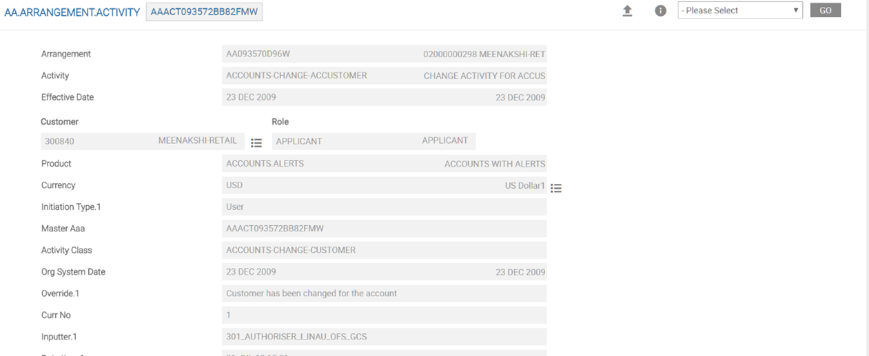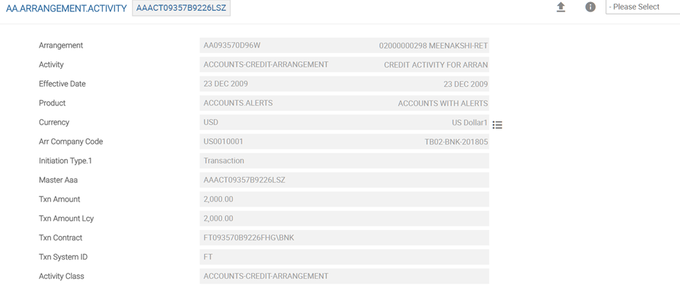 The system triggers the AA.ARRANGEMENT.ACTIVITY for the above Funds Transfer.