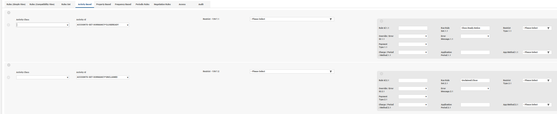 Individual AA.PROPERTY.CLASS.ACTION records control which Product Line it’s associated to.The Activity Restriction property supports the following actions: