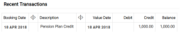 - The account received a pension credit (eligible transaction to trigger change Product Activity) of 1,000 USD on 18 April 2018.