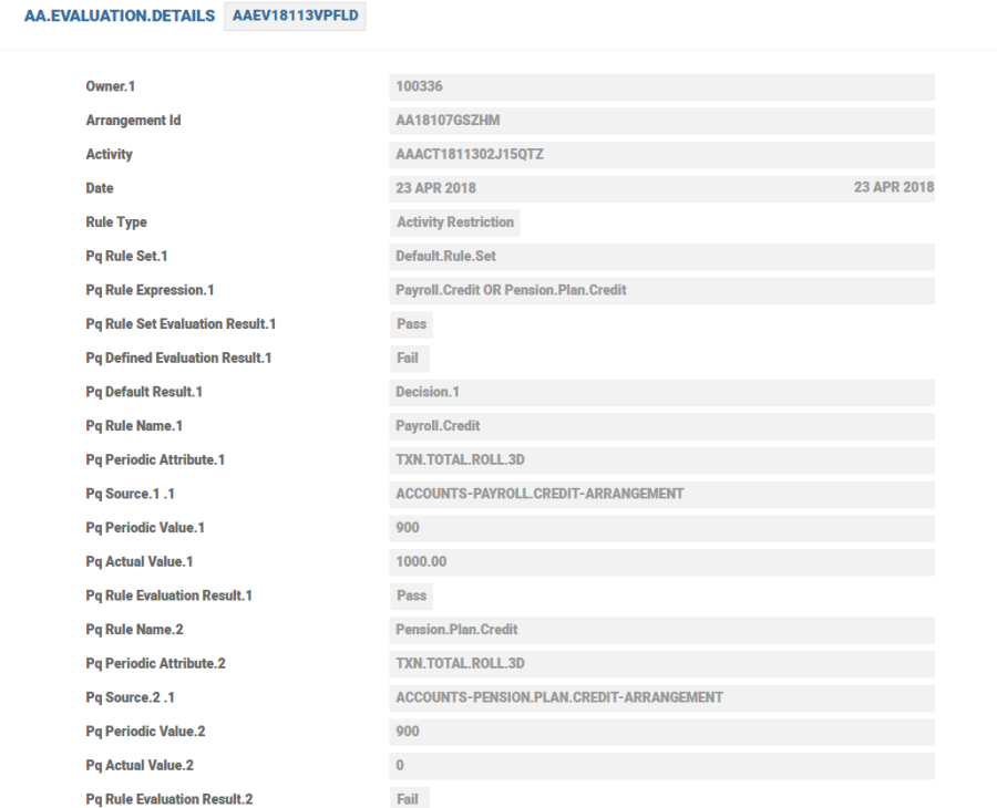 - These results are recorded in AA.EVALUATION.DETAILS and can be accessed from arrangement overview.