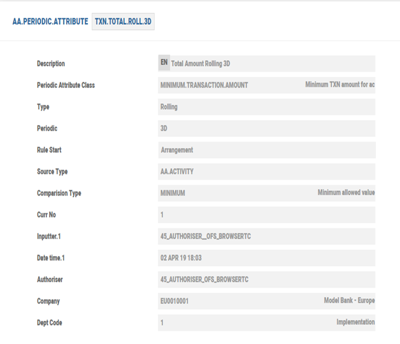 | 17 April 2018 | Current account creation | Qualifier frequency 3 days | System runs the evaluation rules on the arrangement on 3 days frequency |