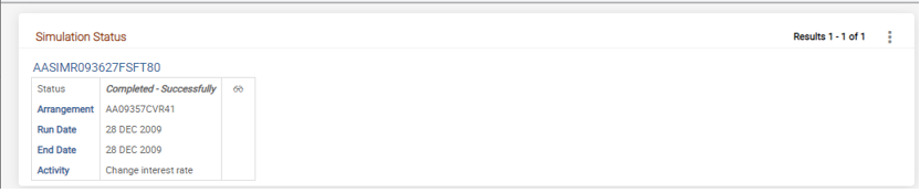 The following screenshots show the simulation of rate change activity on disbursed arrangements. APR is calculated based on the new rate in the simulating rate change activity.