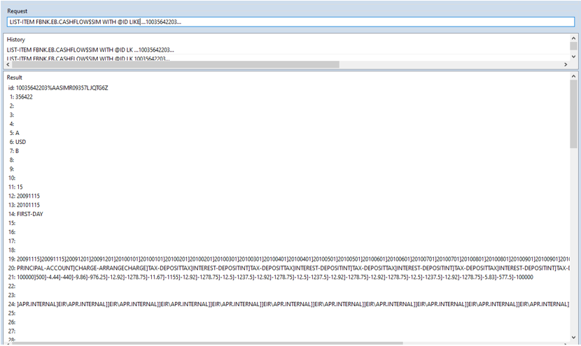 The following screenshot shows the EB.CASHFLOW$SIM file with APR calculated based on the new interest rate given during simulation.