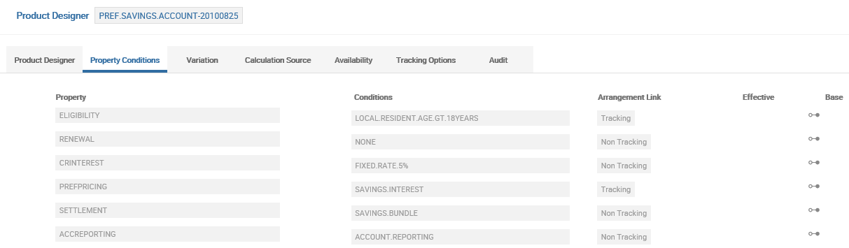 - Setup for Reporting Product Condition which is attached to the Reporting property of the Deposit product is as follows