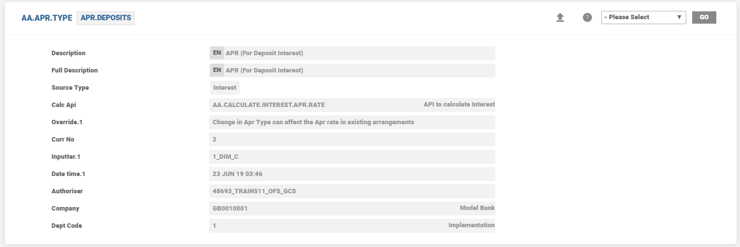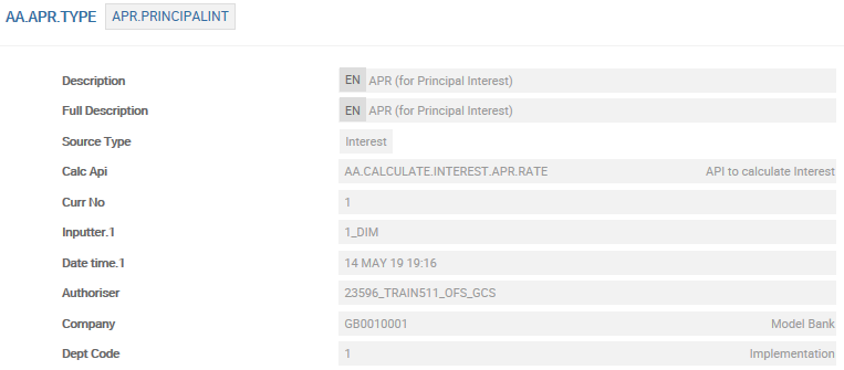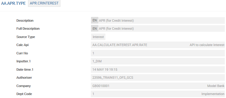 - Setup for APR calculation in AA.APR.TYPE is shown below