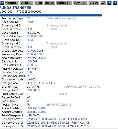 - When Funds Transfer applications are entered with commission or charge related fields, and any error is encountered while committing, all the commission or charges related fields are nullified and need to be entered once again or defaulted from