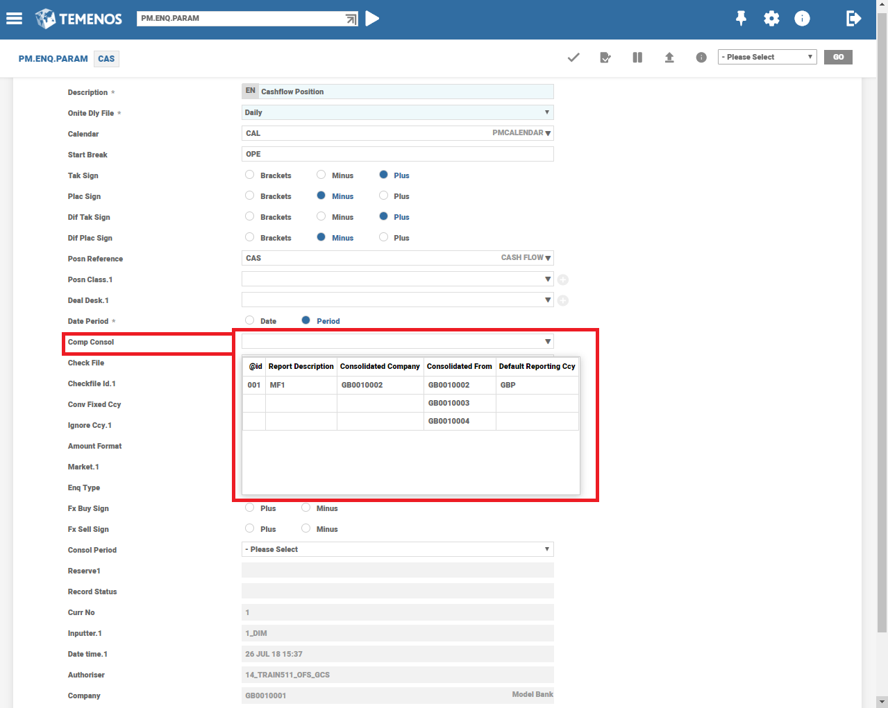 PM.POSN.REFERENCErecord or group of position classes to be used are directly specified. - In a multi-company environment, enquiry information can be consolidated from different companies.