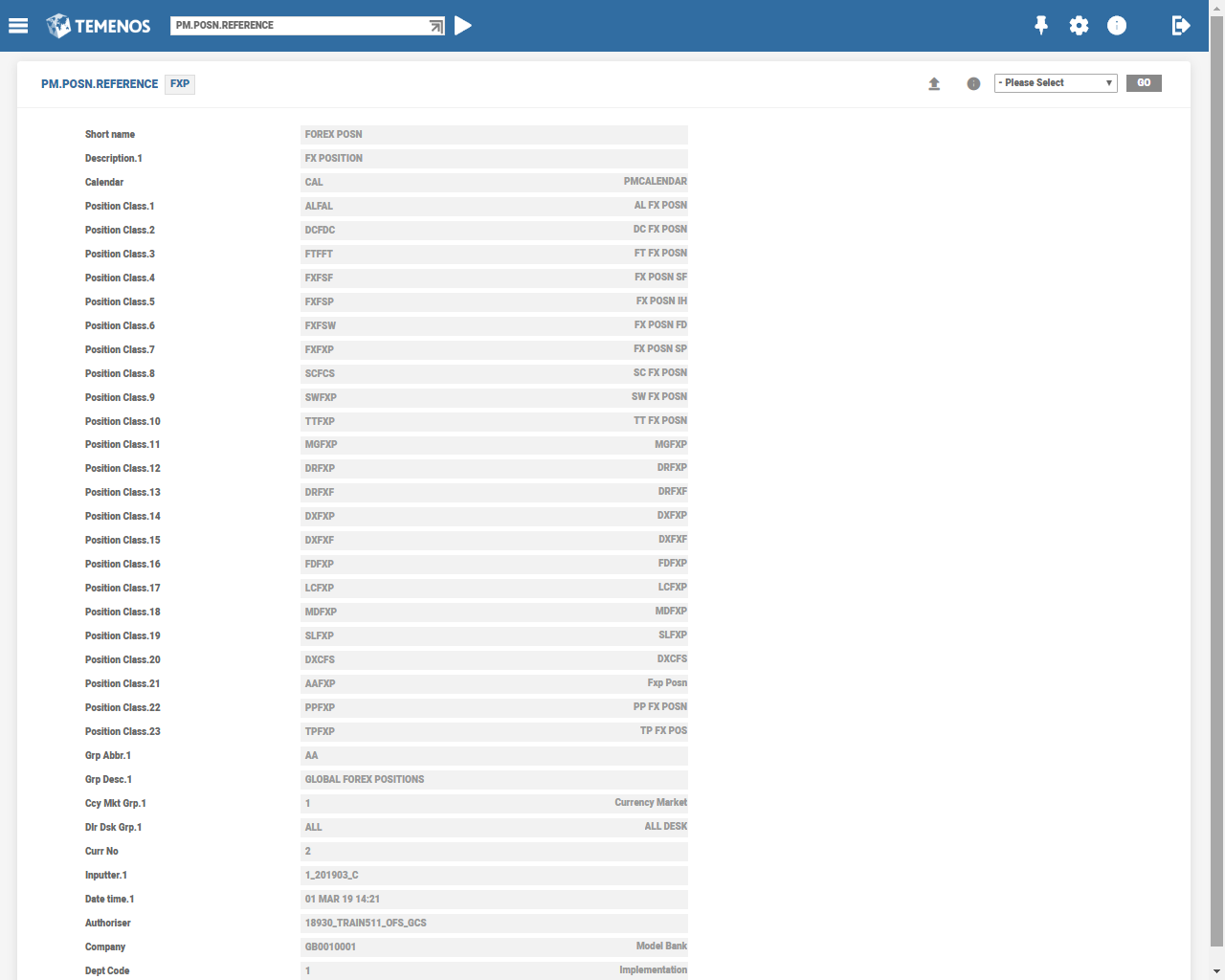 One way to test the changes made to PM.POSN.REFERENCE position classes would be to use the record, which has been changed as an input parameter to an equivalent PM.ENQ.PARAM record. For example, the GAP enquiry defined in PM.POSN.REFERENCE equates to the Interest Mismatch (GAP) Position (PM.GAP) enquiry defined in PM.ENQ.PARAM.