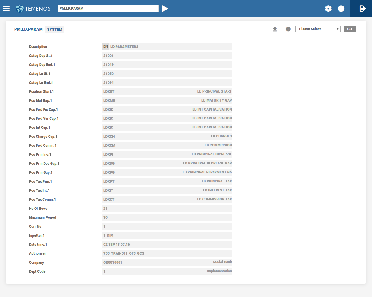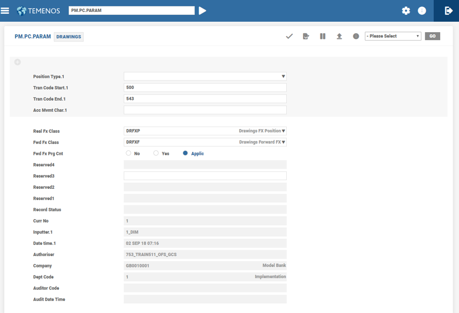 System defines the Position classes in a number of the older Temenos Transact applications, however, parameter tables defines the newer applications.