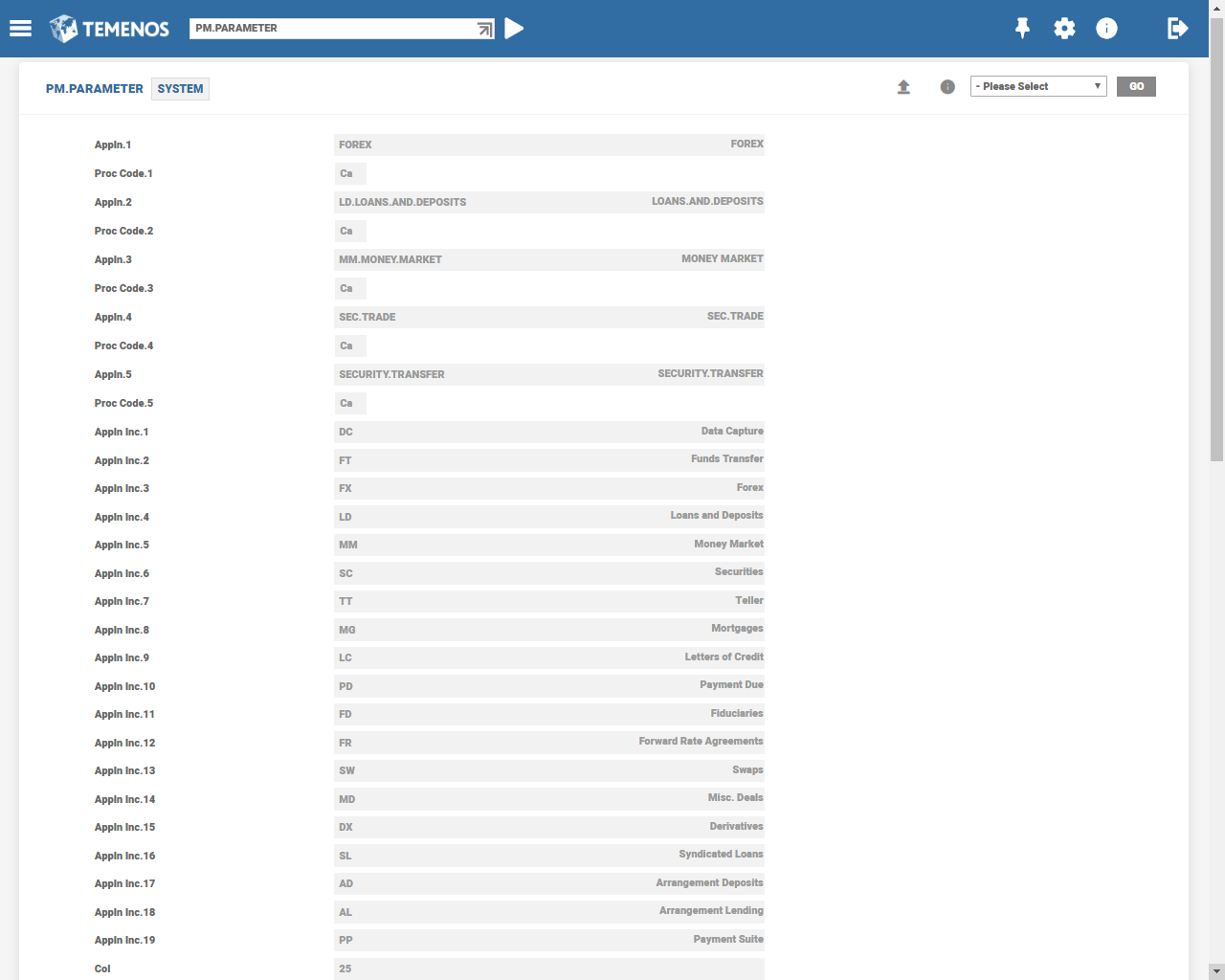 This application enables addition or deletion of a Temenos Transact product for PM processing by inserting or deleting the Product ID in the Appln Inc field of the PM.PARAMETERtable.