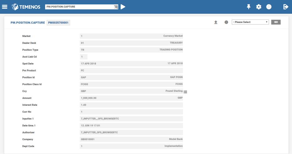 The subsequent reflection of position movement data in PM enquiries is taken care automatically and the position data is included in the relevant position enquiries. For example, in this case PM.GAP enquiry. If the item need not be added in PM enquiries,the PM.POSITION.CAPTURE record can be reversedat any point before reaching the value date.