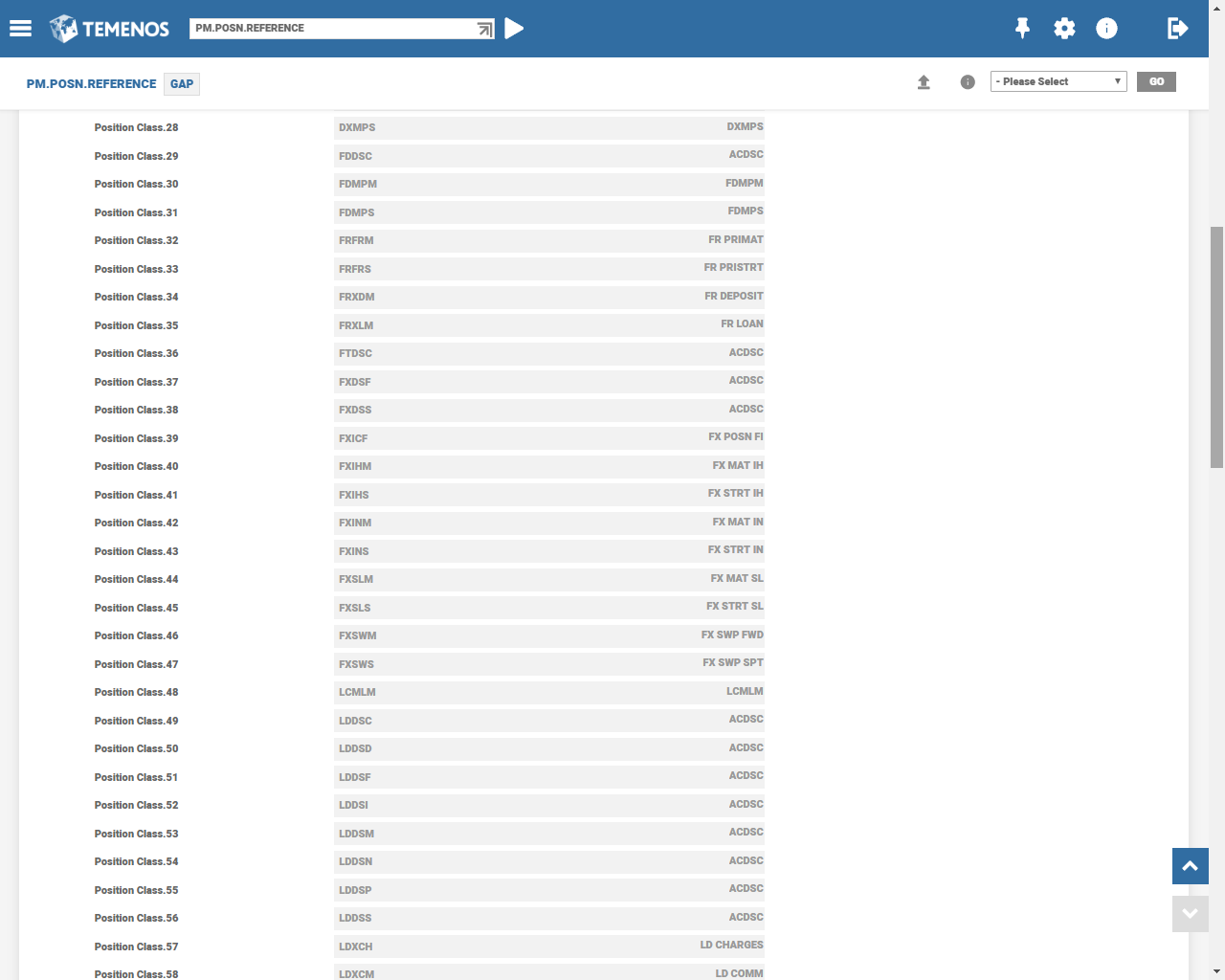 Users setup PM.POSN.CLASS table to identify all the individual activities for each relevant Temenos Transact transaction, each with a unique ID and description. This unique ID can be appended to individual activity records and referenced by other programs (as appropriate) in the construction of enquiry records.