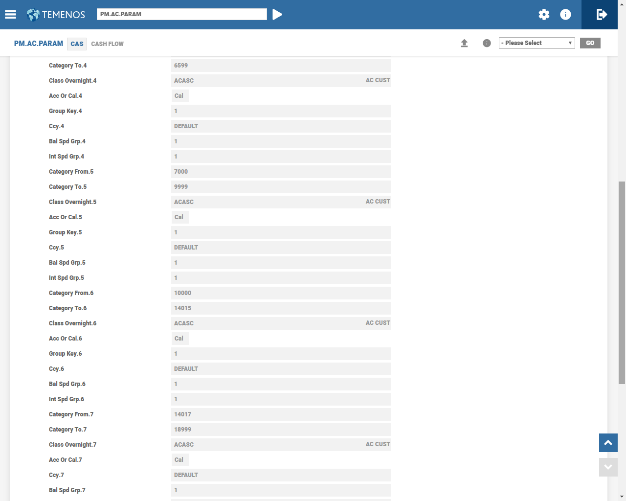 It is possible to define more than one PM.AC.PARAM record, if necessary. For example, to setup different spreading characteristics for the same range of account categories.