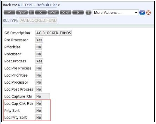 - If the value is set to Yes, during RC capture processing, the system will check if a routine with the name RC.CAPTURE.CHK. <RC.TYPE.ID>.LOC exists in the system. If the routine exists, the system invokes this routine to decide if the transaction is eligible for capture or not. If this returns (determined using the return parameter value) CAPTURE.FLAG=FALSE), then this would override core’s capture flag and the transaction will not be captured.