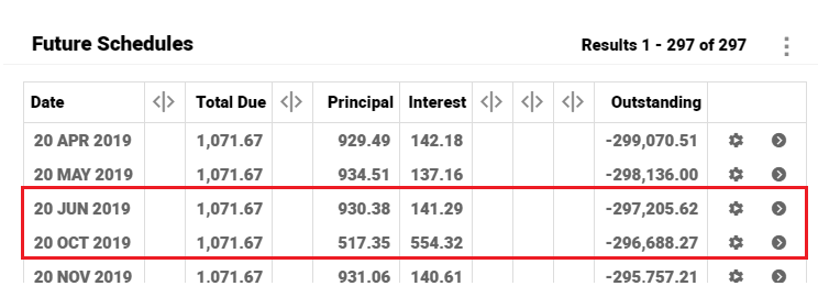 The below set of screenshots display the payment holiday applied on a Mortgage loan.
