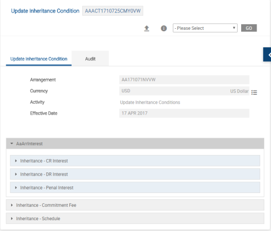 - With the above update, the user defines the USD Conditions for Credit Interest, Debit Interest, Penalty Interest and Schedule available for Inheritance.