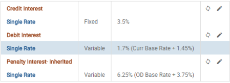 - Now, the usual Change-Debit Interest Activity can be run to amend the Conditions (Margin rate changed from 0.75 to 1.45).