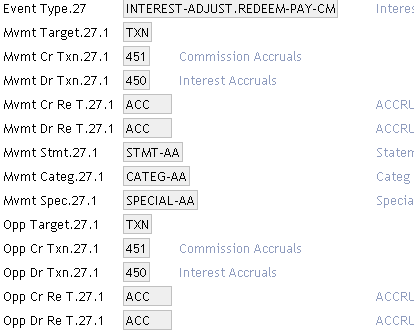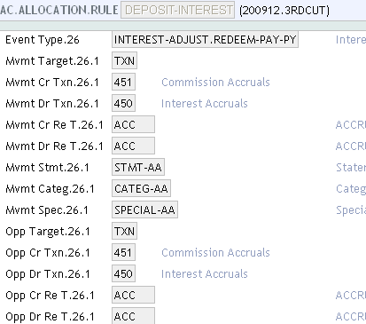 The below screen shot displays INTEREST-ADJUST.REDEEM-PAY-PY event type in the AC.ALLOCATION.RULE.