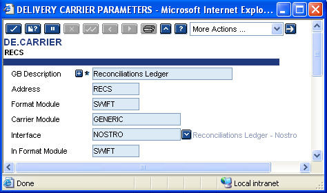 This application allows the user to define a record for each Nostro reconciliation account to send messages to reconciliation carrier. |