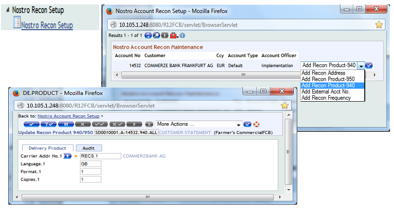 - Delivery module for sending and receiving statements, that is, MT940/MT950 from nostro banks for reconciliation.