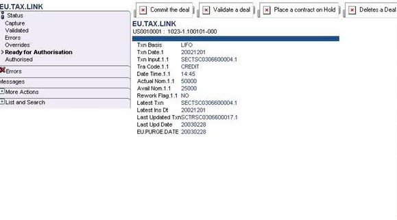 All transactions prior to the purge date that has an available nominal of zero are purged and moved during the course of next COB. The below screenshots show the Eu Purge Date field in EU.TAX.PARAM, EU.TAX.LINK and EU.TAX.LINK.PAST application.