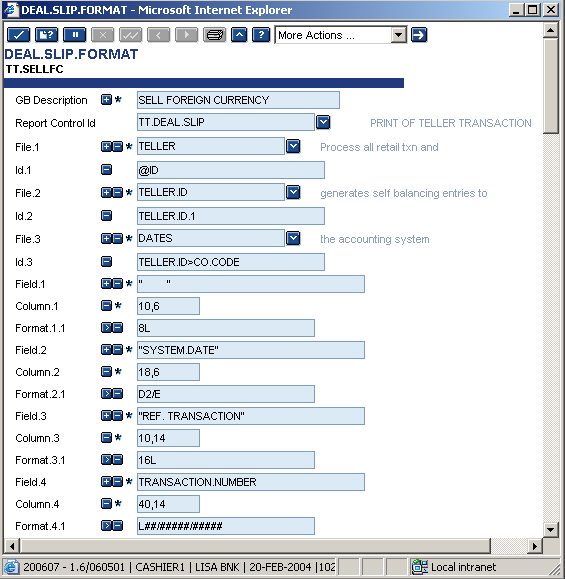 Although the system processes many types of transactions, the basic mechanism for balancing entries, defaulting rates and charges remains the same. Hence all transactions are processed by the one application (TELLER), but the screen prompts can be varied by tailored VERSION with specific defaults being controlled by a TELLER.TRANSACTION.