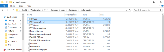 TFO.War, navigate to the existing deployment folder (Temenos>JBoss>Standalone>Deployments). - Paste the