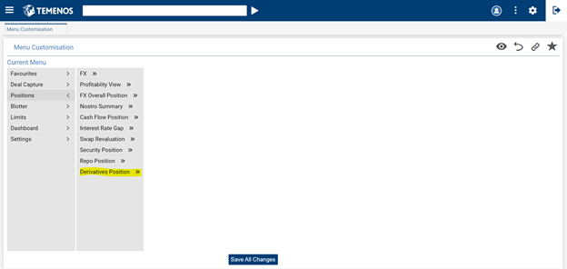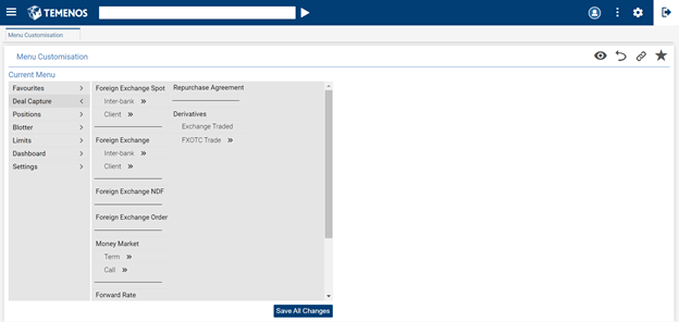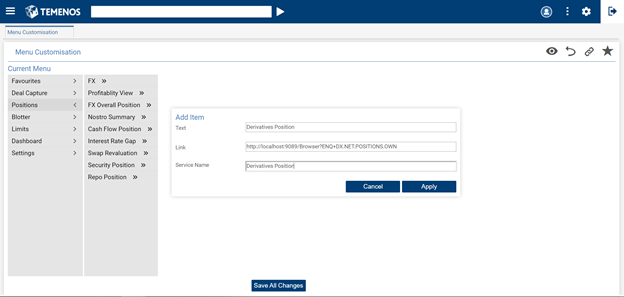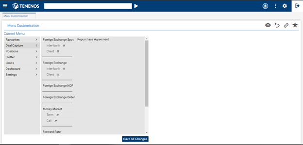 - Select the menu item (for example, Deal Capture) in which a sub-menu needs to be added.