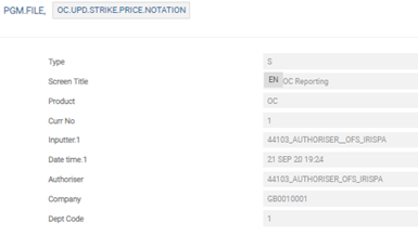 The user needs to configure the following records in PGM.FILE (Type as ‘S’ and Product as ‘OC’), which supports EMIR reporting: