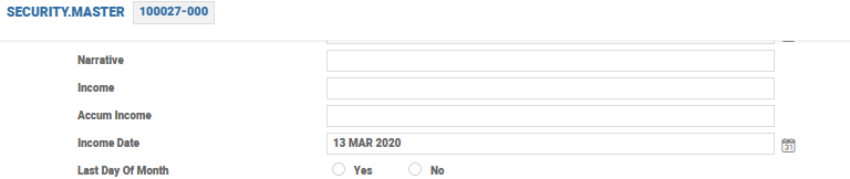 In addition, to update the prices, it may be a requirement with some forms of securities such as unit trusts and funds to record income and accumulated income. This can also be recorded manually or automatically in the Income, Accum Income and Income Date fields.