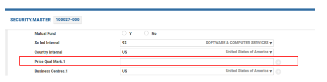 The price of a security is affected by cum and ex periods and the Price Qual Mark field reflects these markers in the SECURITY.MASTER application.