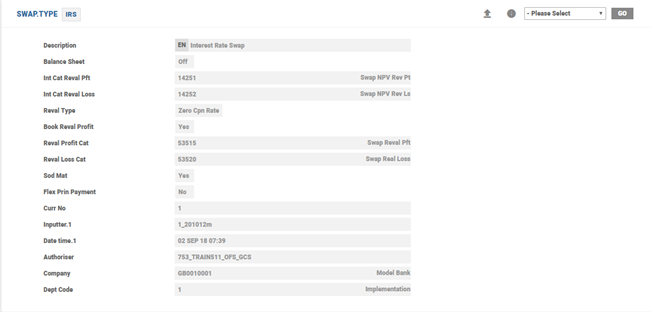 The following are the configuration options the system offers in Interest Rate Swap: