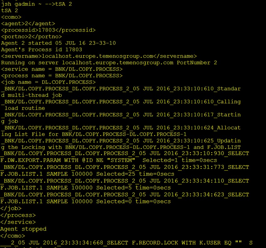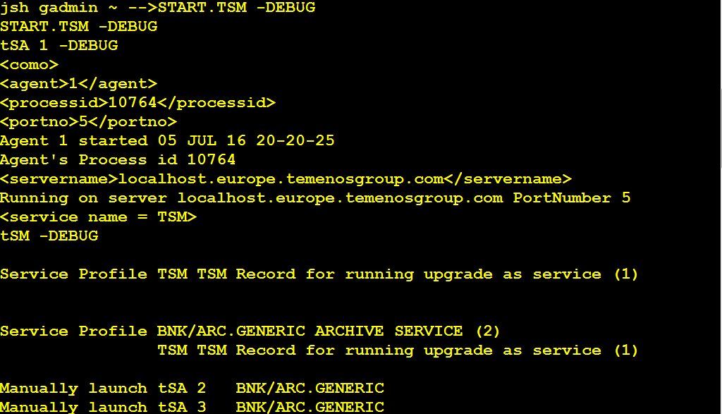With your TSM service still running in DEBUG mode, you can see the generated TSA agent ID generated for DL.COPY.PROCESS.