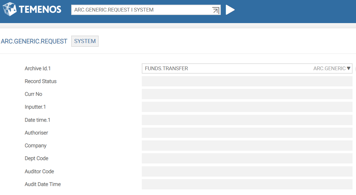 After the ARCHIVE record is setup as explained above, you need to trigger the archiving process by verifying the ARC.GENERIC.REQUEST according to the standard WAR.