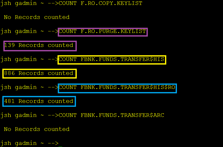 As per the above example screen captures, when the COPY process completes, 139 records read from RO.COPY.KEY.LIST must have been written in RO.PURGE.KEYLIST.