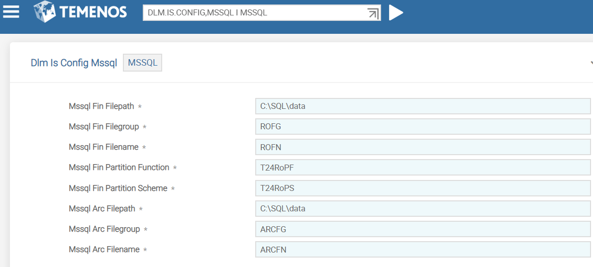 Indicates the name of the tablespace in the Temenos Transact database used for Temenos Transact data |