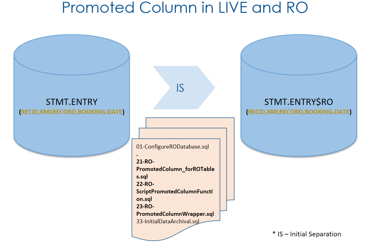 During the initial separation process, all the promoted columns available in the LIVE database are created in the RO database using the utility script.