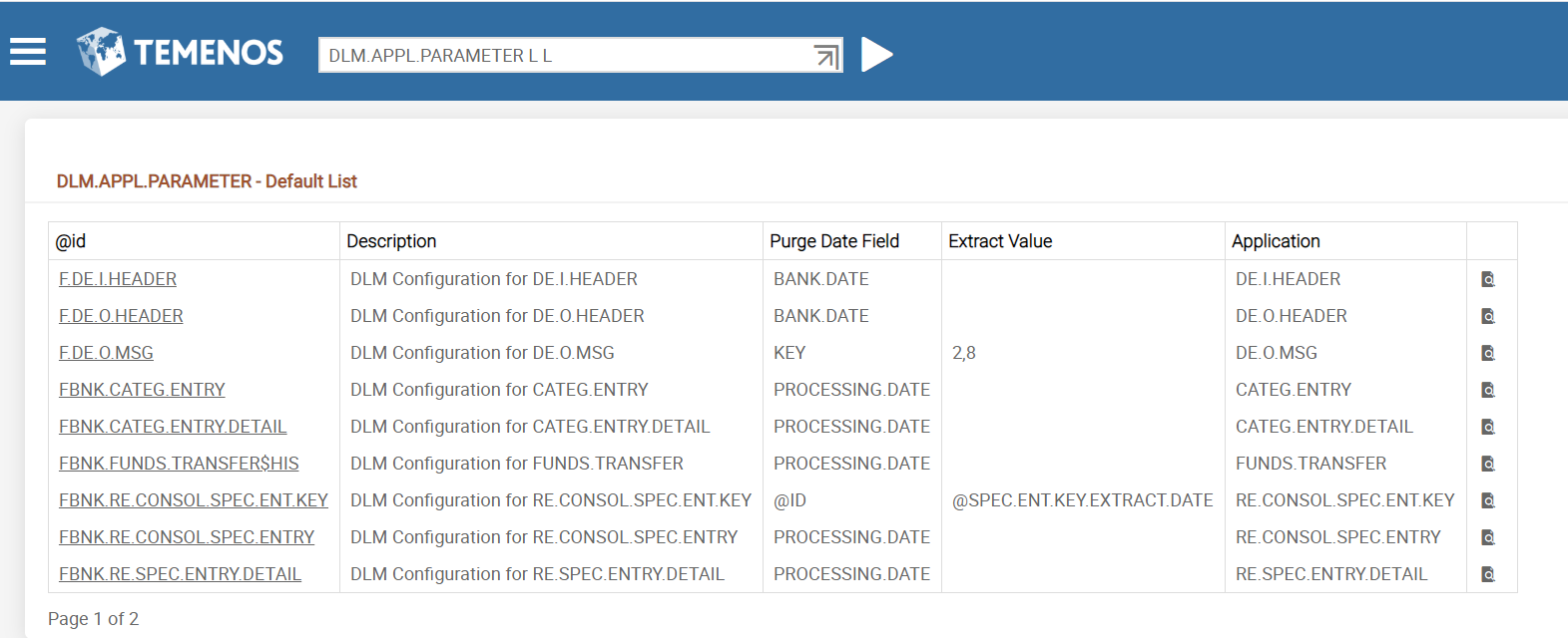 The following screen captures provide the list of all the applications currently supported in DLM.APPL.PARAMETER for Trickle Feed processes.